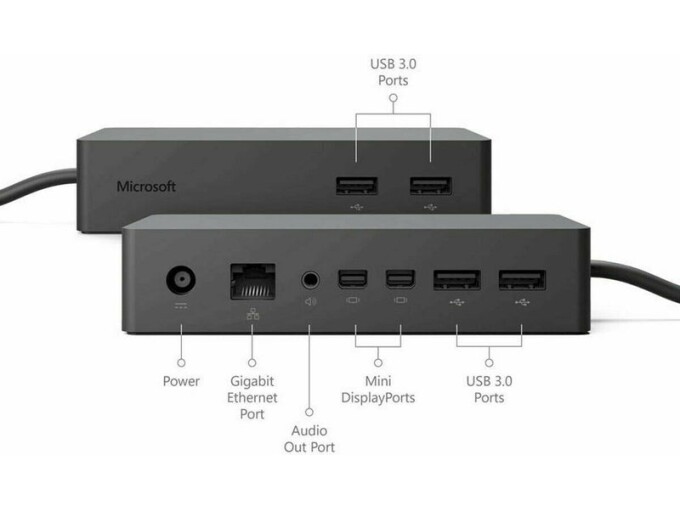 Microsoft Surface Dock (Model 1661), 2 x Mini DisplayPort, 4 x USB 3.0, 1 x Gigabit Ethernet, 1 x 3.5 mm ljuduttag, Surface Connect, 90 W nätadapter, Kompatibilitet: Surface Pro 3–11, Surface Laptop 1–7, Surface Go 1–4, Plast, Svart, Mycket Bra skick, 1 års garanti. Läs mer